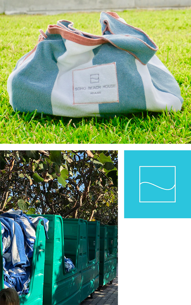 With the repurposing of damaged beach towels, Soho Beach house saved 3 million liters of water, reduced CO2 emissions, saved on the cost of new canvas bags, and prevented 1,000 pounds of textile waste from going into Florida landfills.